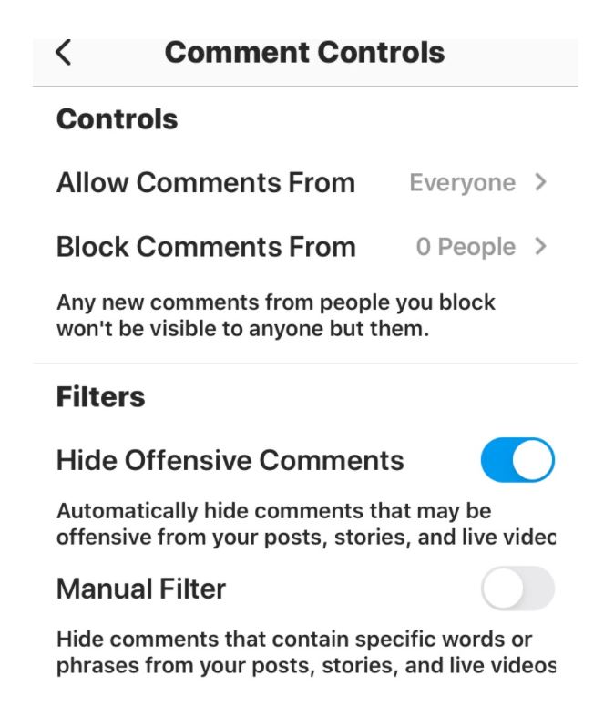 - Filter comments through Instagram’s privacy settings to protect against offensive comments. You can find it under “Menu”, then “Settings”, then “Privacy>Comments” and then select “Hide Offensive Comments.”