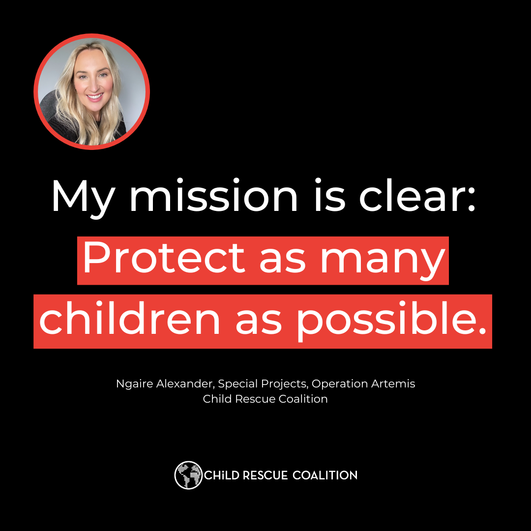 Please join us in welcoming Ngaire Alexander to the Child Rescue Coalition family. We’re excited to see the incredible work she will accomplish through Operation Artemis and beyond!
